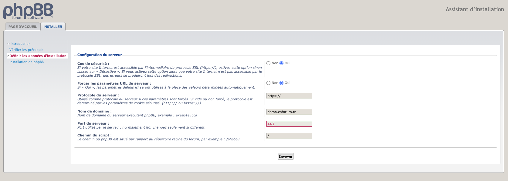 Vous pouvez passer cette étape, une fois le forum installé vous pourrez activer le certificat SSL depuis votre hébergeur et règler ces paramètres depuis le Panneau de configuration (PCA)