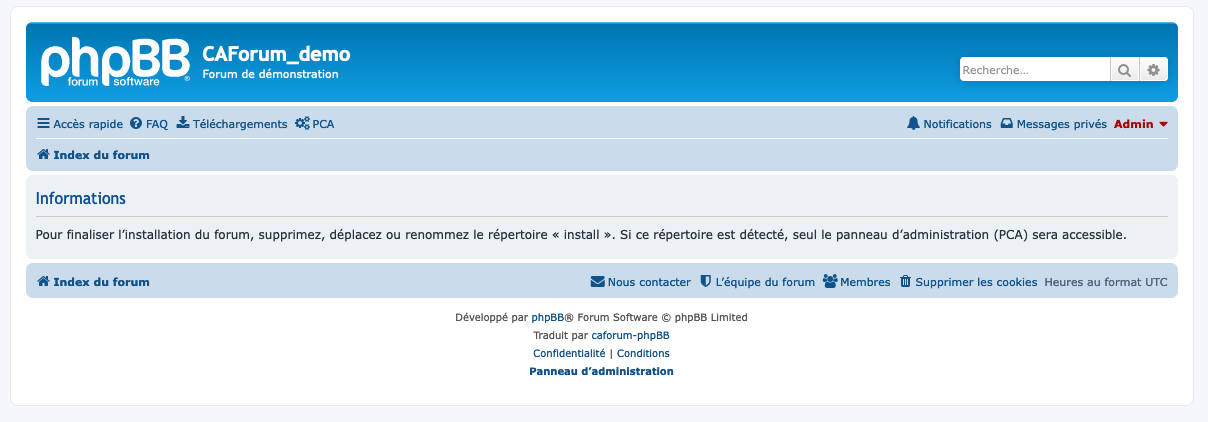Vous pouvez renseigner le nom et la description de votre forum, ce paramètre peut être modifié ultérieurement depuis le PCA